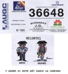 También, todo aquel que quiera colaborar en la venta de lotería, mandar un correo electrónico a valencia.accionasociativa@augc.org, diciendo vuestros datos y donde os podemos hacer llegar dentro de nuestras posibilidades, el/los talonarios que deseéis.