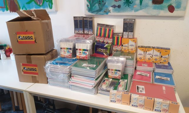 Para ayudar al colectivo de los niños en etapa escolar, este martes se hizo entrega de diverso material para los refugiados que llegarán al Colegio Escandinavo Costa Blanca de Orihuela Costa (Alicante). La incorporación de los pequeños está prevista para el lunes día 11 de este mes. Desde la Asociación Unificada de Guardias Civiles se está procurando que las necesidades de los futuros alumnos y alumnas queden cubiertas.