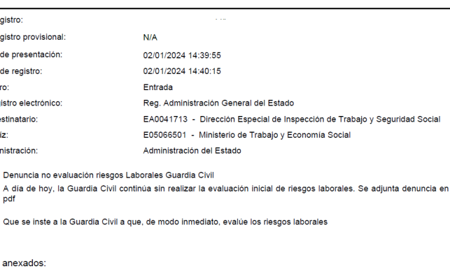 Nos preocupa como el Gobierno actúa de modo contundente contra cualquier empresa privada que no evalúe los riesgos de los puestos de trabajo mientras mira para otro lado cuando incumplen sus obligaciones y ponen en riesgo la salud del personal de la Guardia Civil.