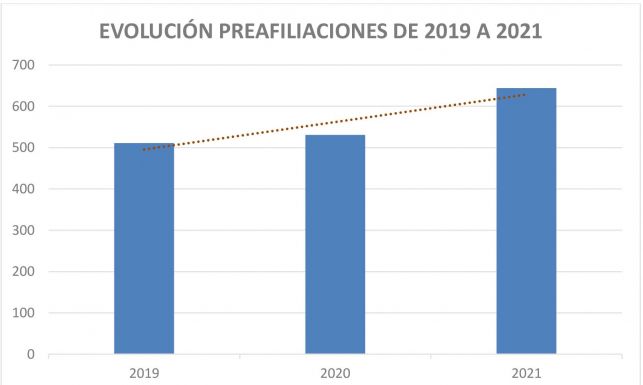 Evolución afiliación de Guardias Alumnos que permanecen en AUGC tras el periodo de prácticas