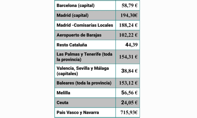 Adjuntamos una tabla donde se detallan los pluses de capitalidad de otros territorios.