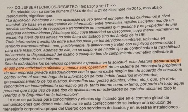 Otra cuestión que nos parece irregular es que se obligue a los agentes a permanecer en los grupos de WhatsApp que se crean en las Unidades. En ocasiones, sus teléfonos son incluidos sin su consentimiento y sin ánimo de expresar voluntariedad por formar parte del mismo. Esta vía se utiliza para enviar mensajes relacionados con el servicio cuando la Dirección General desaconseja la creación de este tipo de grupos para asuntos laborales. Sin embargo, no pasa nada y los agentes ni son informados de que la pertenencia a él es voluntaria. Las cuestiones relacionadas con el servicio, así como los cambios, deben ser transmitidas de forma verbal o escrita por el jefe que tenga las competencias. La aplicación de mensajería puede ser visto o no por los Guardias que pertenezcan a él, no es una garantía de que esa información la está recibiendo.