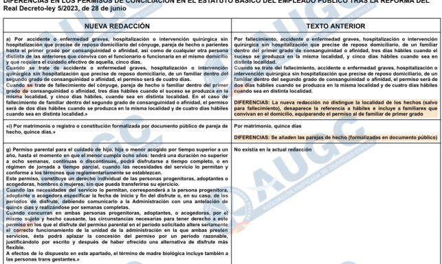Las diferencias entre el anterior y actual texto tras la modificación se pueden contemplar en la siguiente imagen.