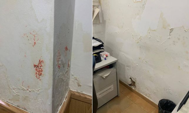 En el edificio principal, si quieren volver a utilizarlo como puesto de trabajo, deben reparar las humedades visibles en paredes y suelos, irregularidades en paredes y suelos con riesgo de caídas al mismo nivel, olor fuerte que dificulta la respiración grado de humedad elevada y no hay suministro de agua, por lo que no funcionan los baños ni la calefacción.