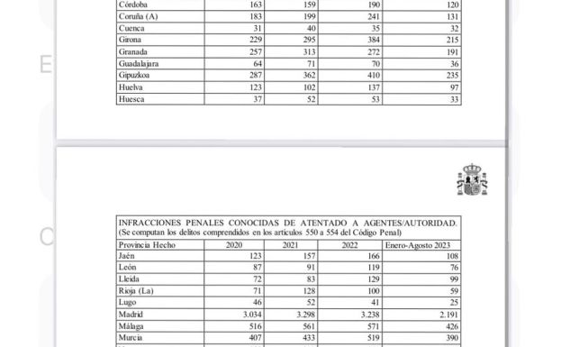 Según los datos emitidos por el Ministerio del Interior en un informe enviado a modo de respuesta a una pregunta parlamentaria realizada por parte del Partido Popular, concretamente a las diputadas Isabel María Borrego y Ana Belén Vázquez, las agresiones a los agentes de las Fuerzas y Seguridad del Estado se sitúan al alza en la primera mitad del año 2023. Una evidencia más de la falta de garantías que existen y los riesgos a los que los agentes están expuestos cada día.
