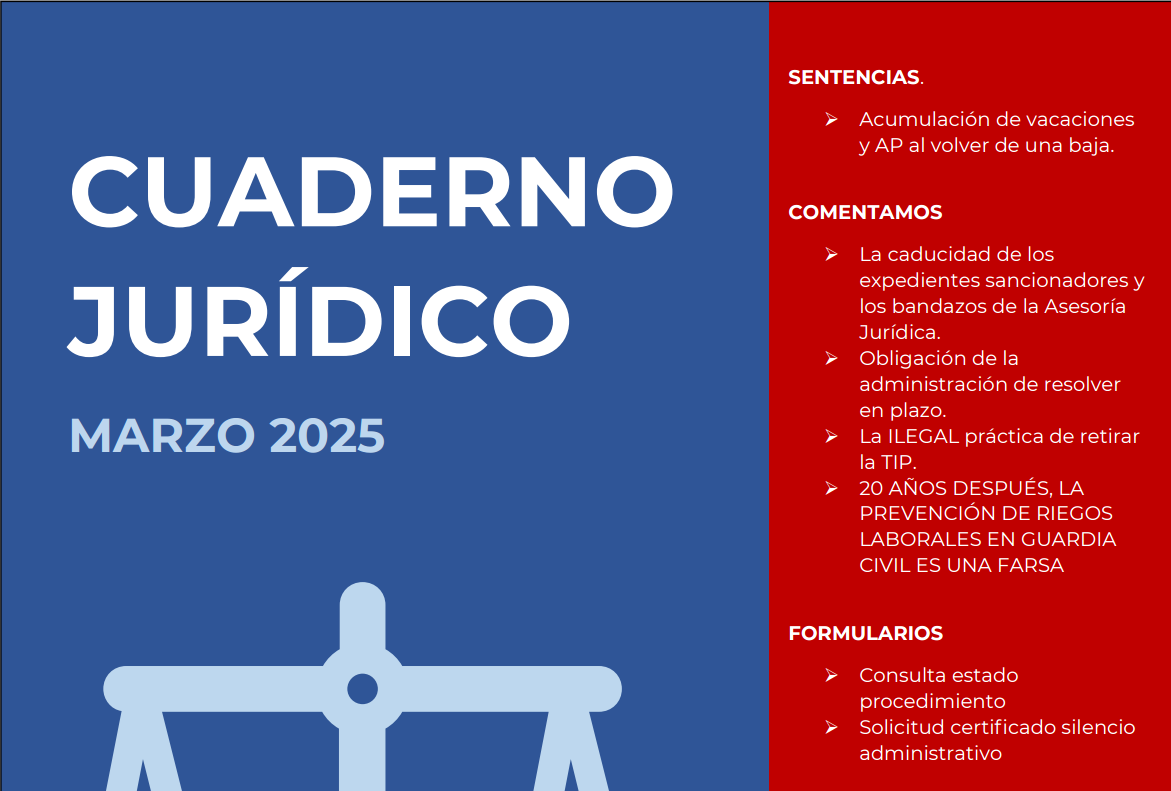 AUGC lanza el cuaderno jurídico del mes de marzo con temas de actualidad e interés para el personal de la Guardia Civil Área de Asuntos Jurídicos 13/03/2025