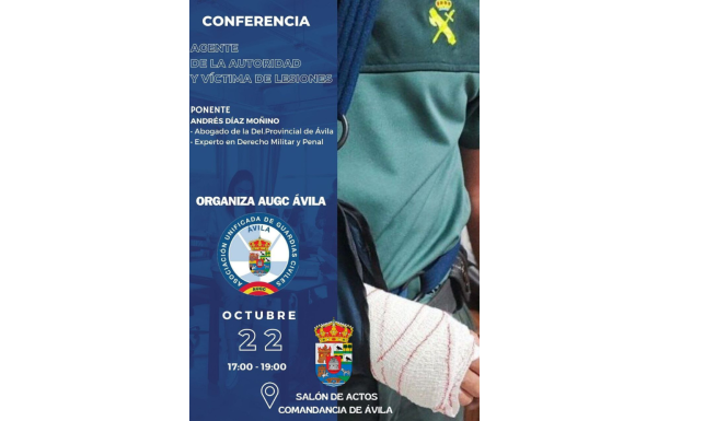 Finalmente, desde la Delegación de AUGC en Ávila, hemos programado una conferencia titulada “AGENTE DE LA AUTORIDAD Y VÍCTIMA DE LESIONES”, que será impartida por nuestro abogado Andrés Díaz Moñino el próximo 22 de octubre en el salón de actos de la Comandancia de la Guardia Civil de Ávila. En esta conferencia se discutirán casos como el acontecido el pasado 28 de septiembre y sus implicaciones legales. Invitamos a todos los guardias civiles a asistir, ya que en cualquier momento, en el ejercicio de sus funciones, pueden verse expuestos a ser víctimas de un delito de lesiones mientras cumplen con su deber.