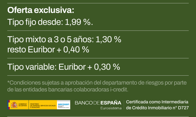 *Condiciones sujetas a aprobación por parte del departamento de las entidades bancarias colaboradoras de i-credit*