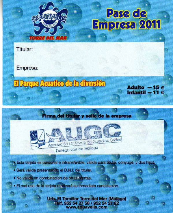 Os comunicamos que ya tenemos en la sede las tarjetas de descuento para el parque acuático de Torre del Mar “AQUAVELIS” para el verano 2011.