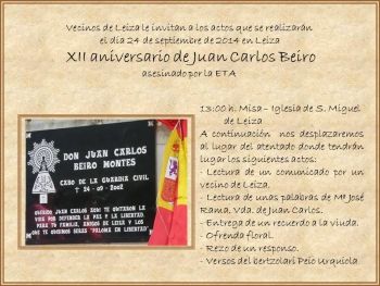 La localidad navarra de Leiza recuerda al guardia civil Juan Carlos Beiro, asesinado hace doce años por ETA