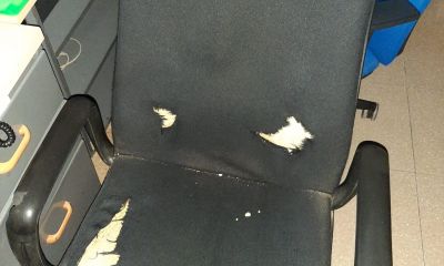 Debajo, imagen del estado deplorable de la silla utilizada por el personal de seguridad que controla el circuito cerrado de televisión (CCTV) en la sala de control.