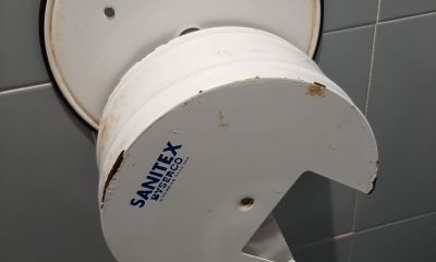 Así puede observarse el estado de los portarrollos teniendo que depositar el papel higiénico de los baños de servicio en el suelo sin respetar las medidas mínimas higienicosanitarias: