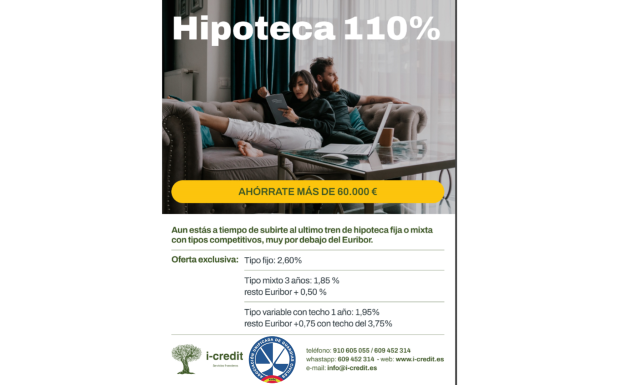 - Permite conseguir hipotecas hasta el 110 % del valor de compra.