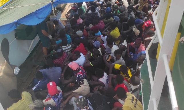 Inmigrantes en el buque de la Guardia Civil Río Tajo