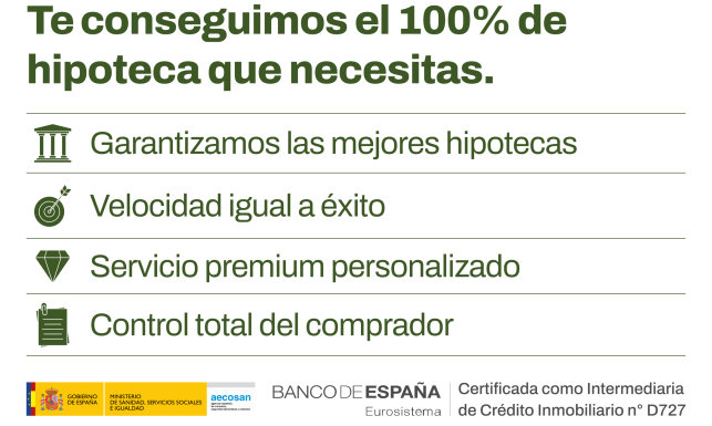 La exclusiva oferta tiene un tipo de interés al 1,99 % pudiendo conseguir incluso el 100 % de hipoteca más gastos gracias al acuerdo que tenemos en AUGC con I-Credit. Incluso para segunda residencia.