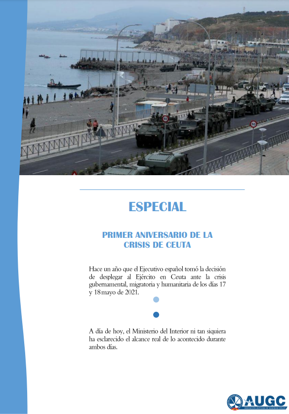AUGC publica un especial sobre la visita a Ceuta con motivo del primer aniversario de la crisis migratoria y humanitaria que se vivió en la Ciudad los días 17 y 18 de mayo del pasado año.